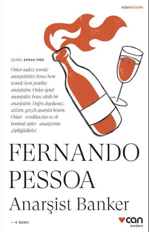 Hayatı, ilgi alanları ve edebiyat alter egolarıyla epey tartışma götürür ancak kitleler üzerinde sonradan çok etkili olmuş Portekizli yazar Fernando Pessoa’nın bu uzun öyküsü, aslında Platon diyalogları formunda, neden sonuç ilişkileriyle bir kavramı tartışan diyalektik bir eser. Tartıştıkları özetle, teoride ve pratikte anarşi nasıl olur, çelişkileri nelerdir, bir banker anarşist olabilir mi ve olursa neden olur gibi belirli bir akıl yürütme enerjisi gerektiren zor sorular. Kitaptaki anarşist banker bir noktada bireyci hatta anarkokapitalist gibi görülebilir, ancak tabii bu öykünün sınırları içinde ne bankerlik hikâyesi ne de paranın hakimiyetini aşacak güce eriştikten sonra ne yaptığı anlatılıyor. Ben başta kendinde bulamadığı toplumu etkileme kudretini, edindiği maddi imkanları kullanarak bulabildiğini hayal ettim. Bir oturuşta bitebilen bu eseri gönül rahatlığıyla tavsiye ederim.