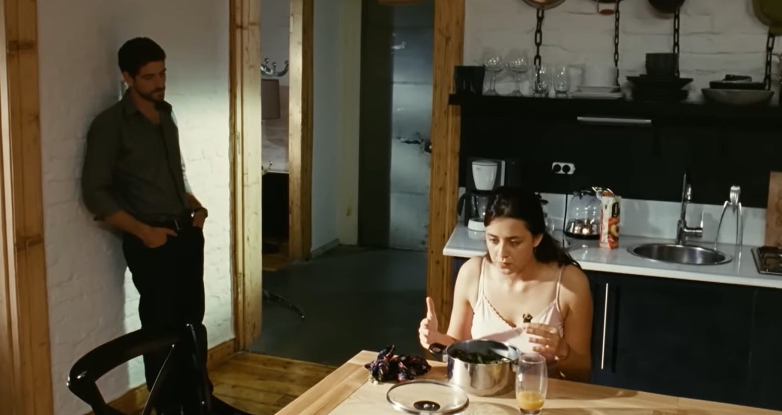 Çağan Irmak’ın 2008 tarihli melodramı Issız Adam’da dananın kuyruğunun koptuğu nokta herhalde Alper’in “Ada ben ayrılmak istiyorum!” dediği sahne. Mizanseni hatırlatayım. Alper’in annesini yeni uğurlayıp eve gelmişler. Ada, çocuksu bir hevesle kadının gitmeden pişirip dolaba koyduğu bir tencere yaprak sarmasına, bütün tencereyi yeme parolasıyla yumulmuş, içecek olarak da şeftali suyu tercih etmiş, hararetle bir şeyler anlatıyor. Duvara sırtını dayamış Alper, görünüşte her şey yolunda gibiyken, işte o sırada bir çuval inciri berbat ediyor. Ada elindeki sarmayı bırakıp şeftali suyundan küçük bir yudum alıyor ve “Neden hiç şaşırmadım diye düşünüyorum!” ile başlayan konuşmasını yapmak için kameraya dönüyor. Ayağa kalkarken bardağı görüyoruz, neredeyse bomboş. Neden? Çünkü Ada en başında bardağa çok az meyve suyu koymuştu. Bir tencere yaprak sarmasına yetecek kadar değil. Yıllar önce sinemada izlerken de bana tuhaf gelen bu detayı gelin biraz açayım.